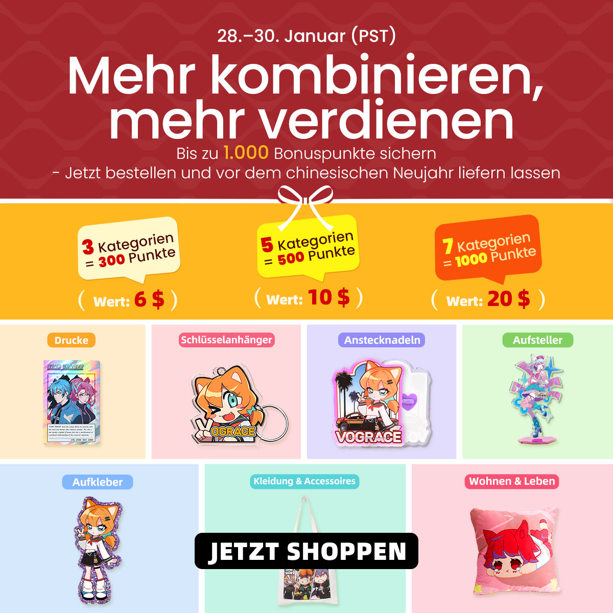 Einschließlich Acryl-Schlüsselanhänger, Acryl-Aufsteller und Acryl-Anstecknadeln