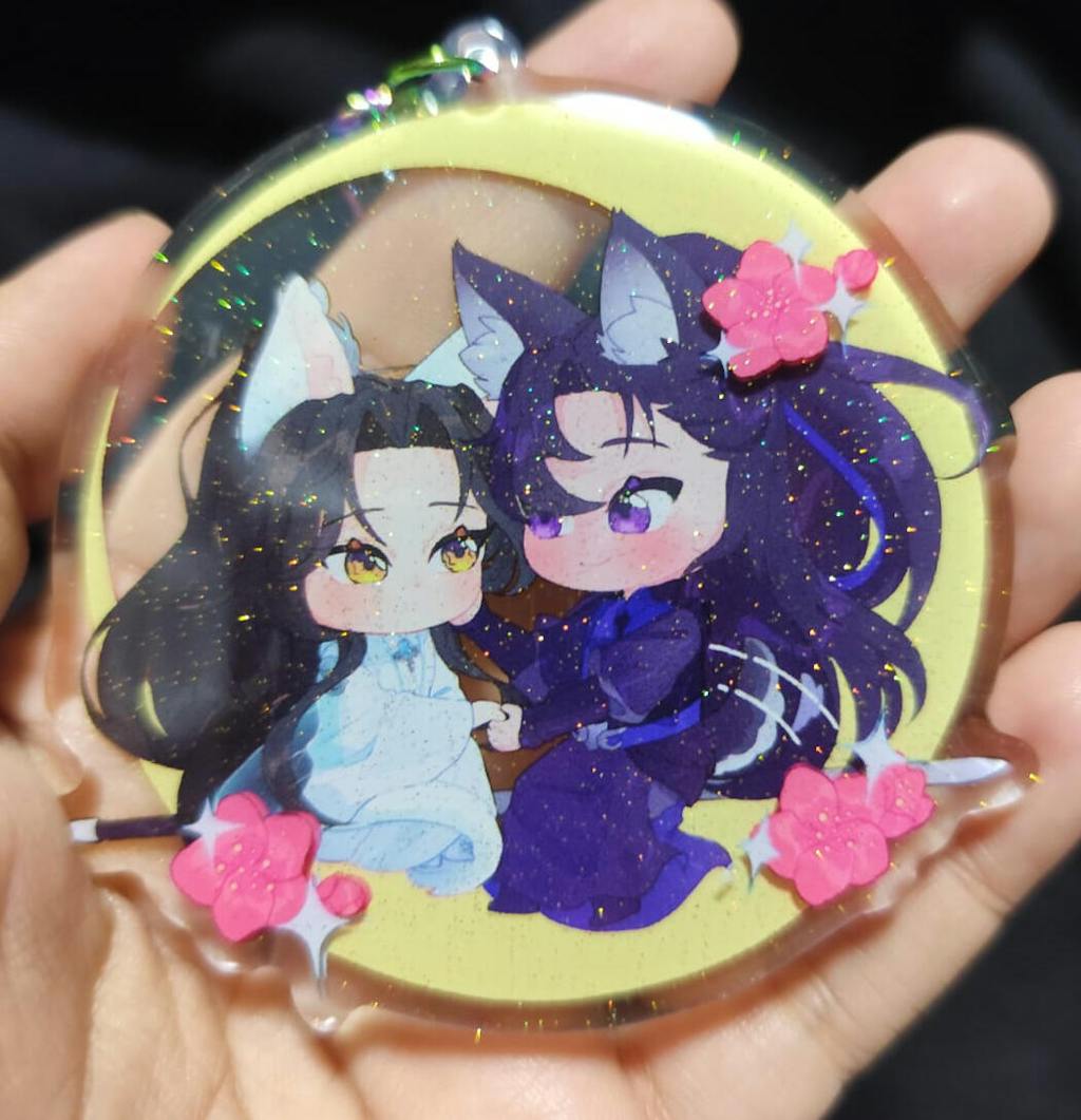 Notice There is a protective film on the surface of vograce acrylic keychains(except the epoxy ones). The keychains will be very bright and transparent after films are torn off!