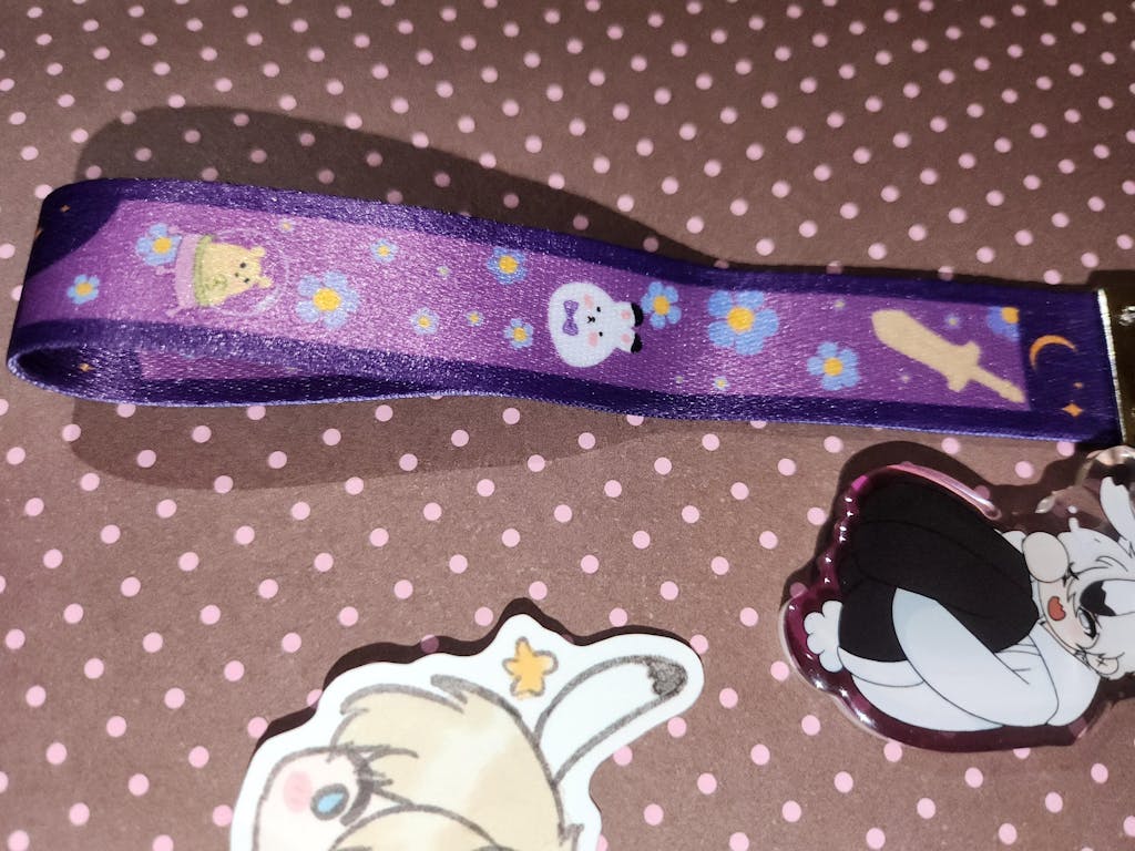 Lanyard Keychains are combined with 2 hot-sale products: lanyards and acrylic charms that can match your design better. The size of the lanyard and the number of acrylics are optional, and the design of the lanyard supports different designs on both sides, and you can choose different acrylic crafts