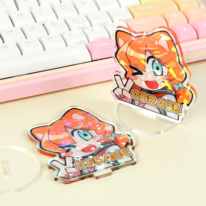 Os standees holográficos de acrílico são claros, coloridos, holográficos, baratos, duráveis e fáceis de moldar. MOQ: 3 peças. A forma, tamanho e design são personalizáveis. Os standees de acrílico podem ser decorações, brinquedos de anime e presentes. A cor e a imagem não desbotam.